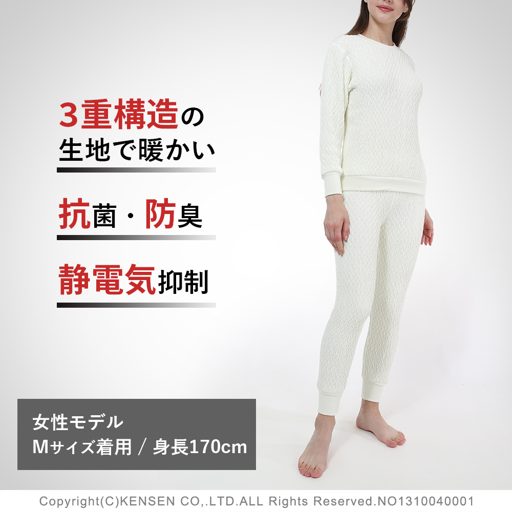 ●手首・トップスの裾、ウエスト、足首部分はニット素材を使用しフィット感アップ!冷気の侵入を軽減します。